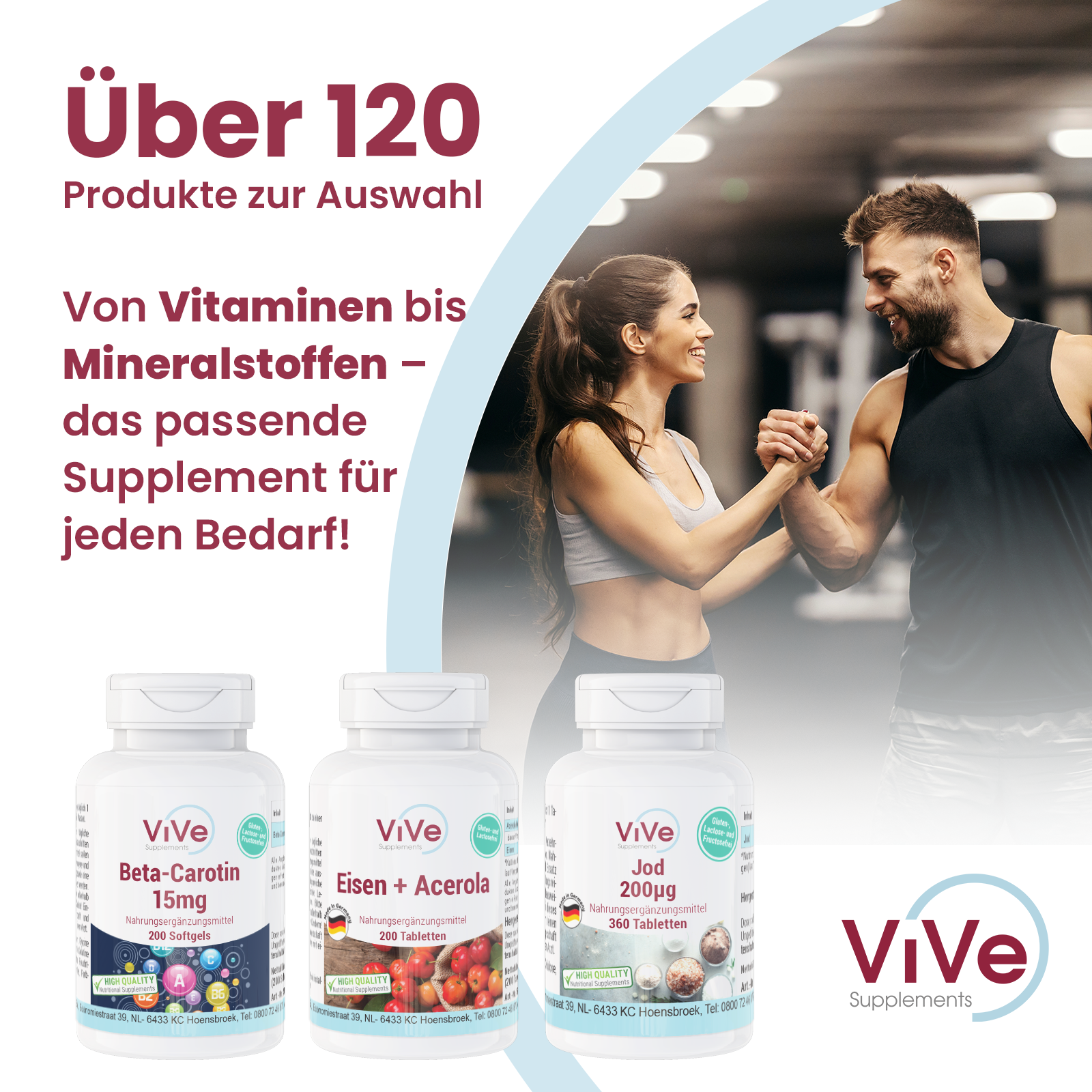 Die Co-Enzym Q10 200 mg Kapseln von Vive Supplements enthalten 200 mg Co-Enzym Q10 (Ubichinon) pro Kapsel. Co-Enzym Q10 ist eine vitaminähnliche Substanz, die natürlicherweise im menschlichen Körper vorkommt und auch über verschiedene Lebensmittel aufgenommen werden kann. Es wird häufig als Bestandteil einer bewussten Ernährung verwendet.