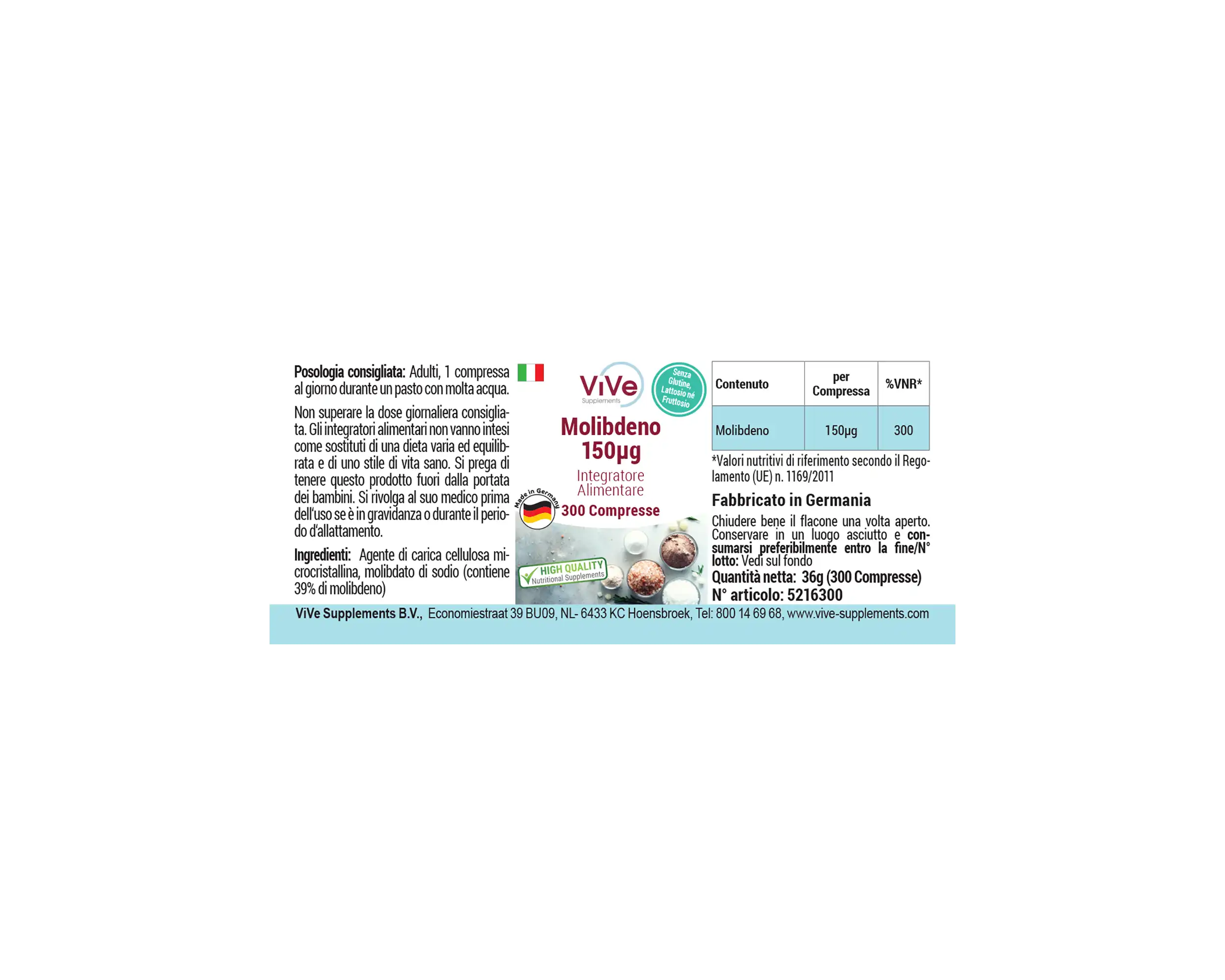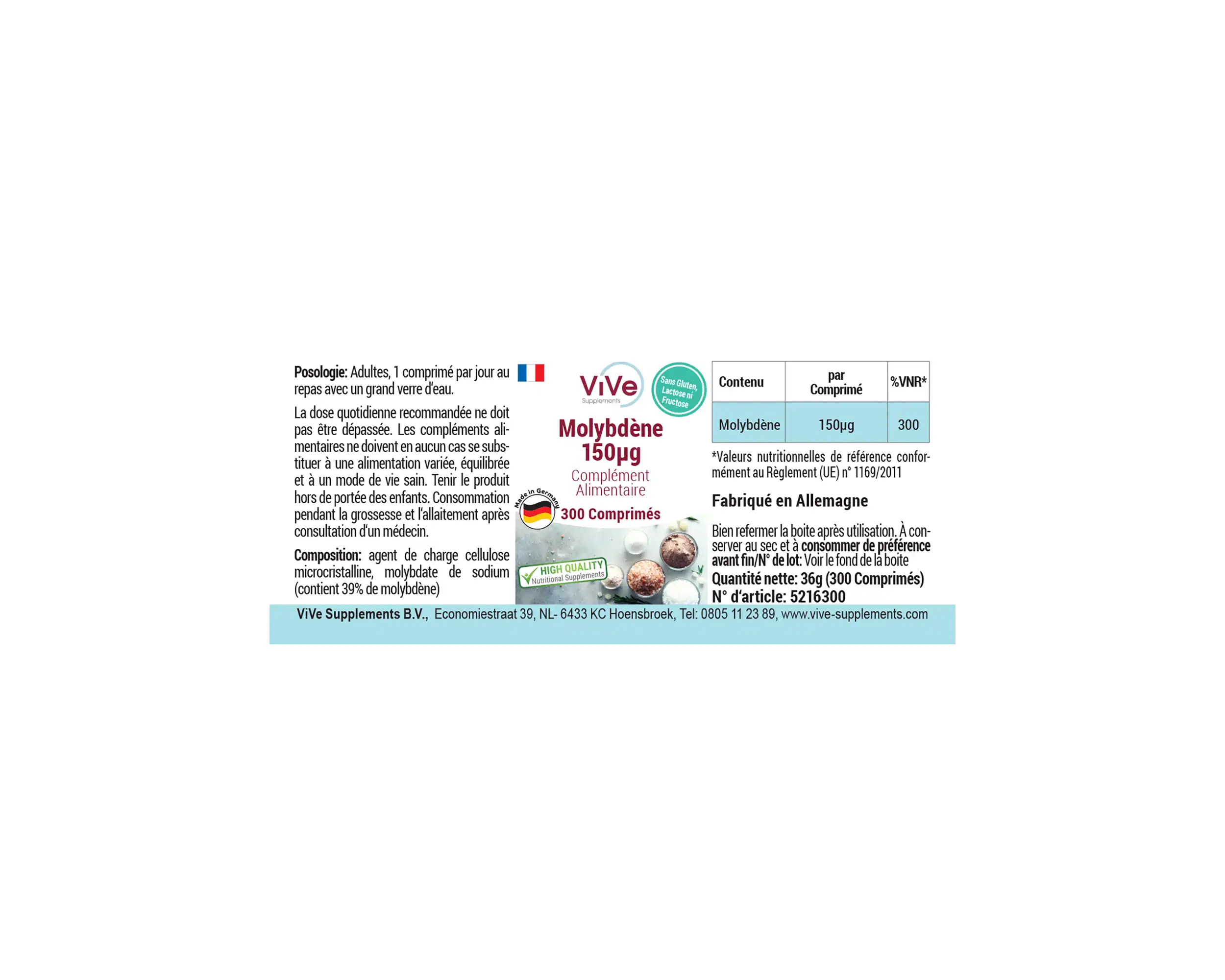 Molybdän 150µg - 300 Tabletten | Vive Supplements