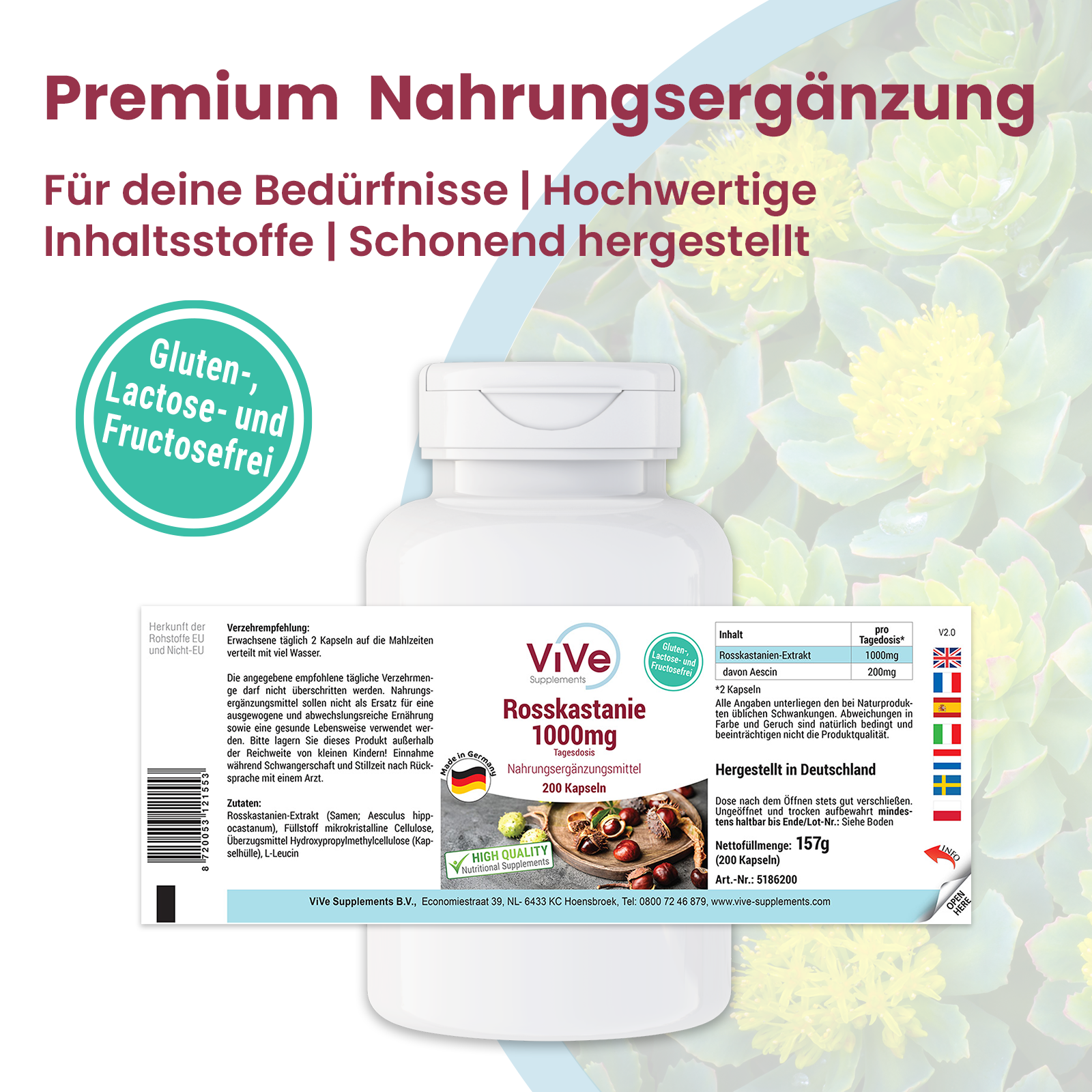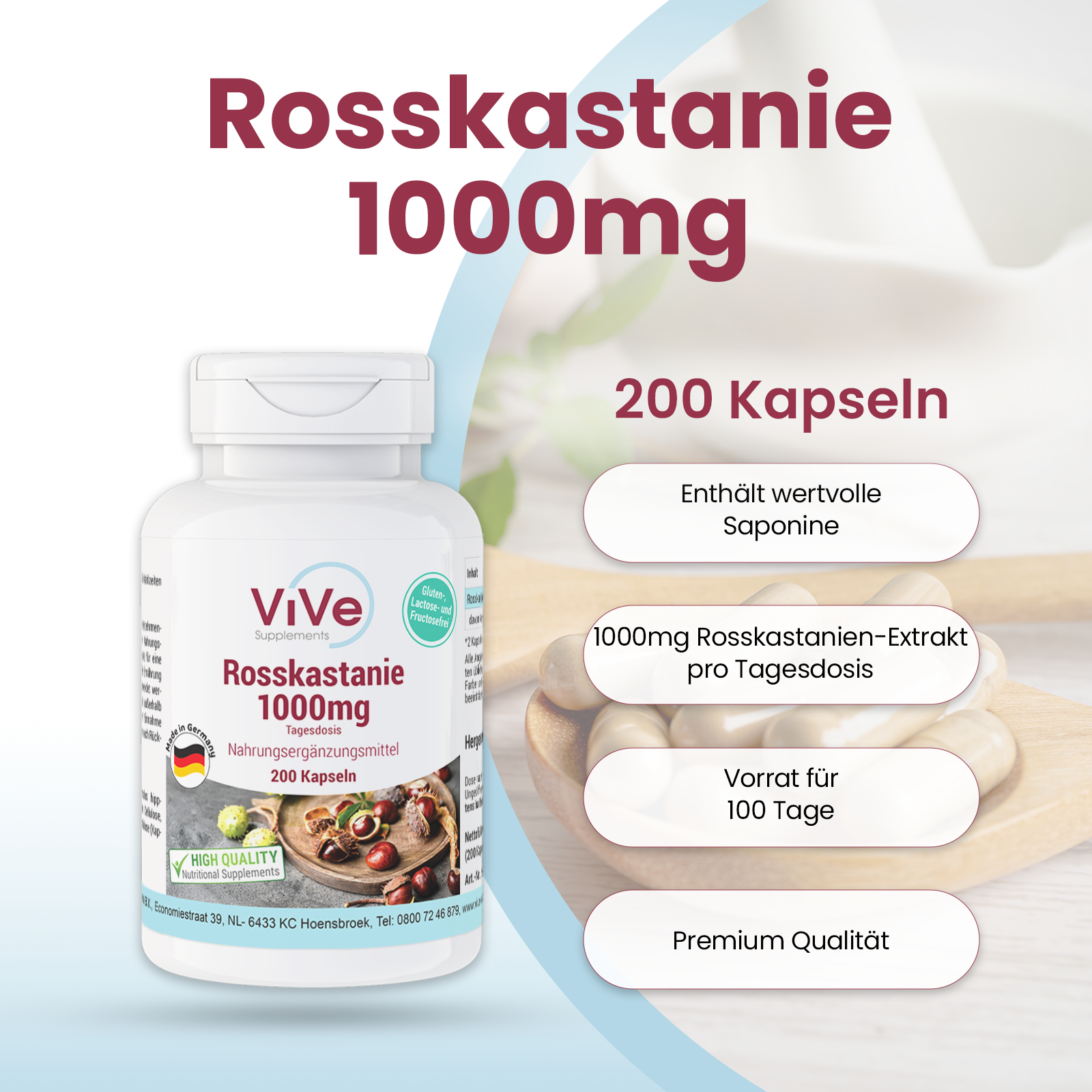 Ippocastano di Vive Supplements senza additivi inutili – Prodotto in Germania