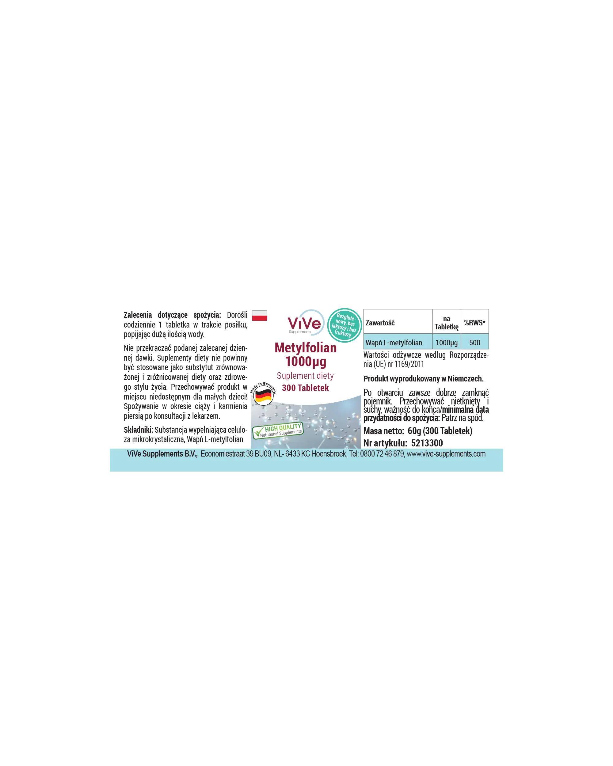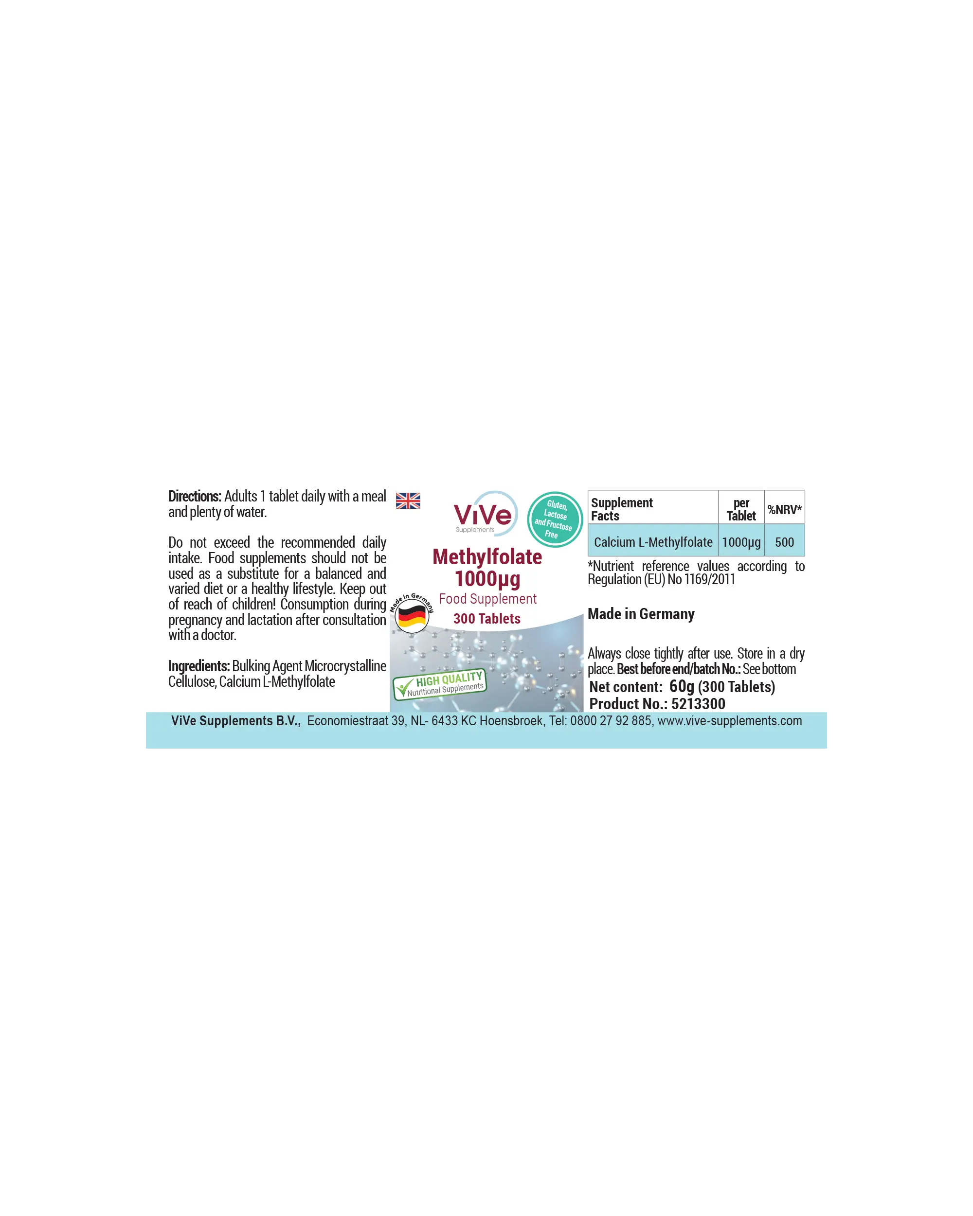 Methylfolat 1000μg - 300 Tabletten | Vive Supplements