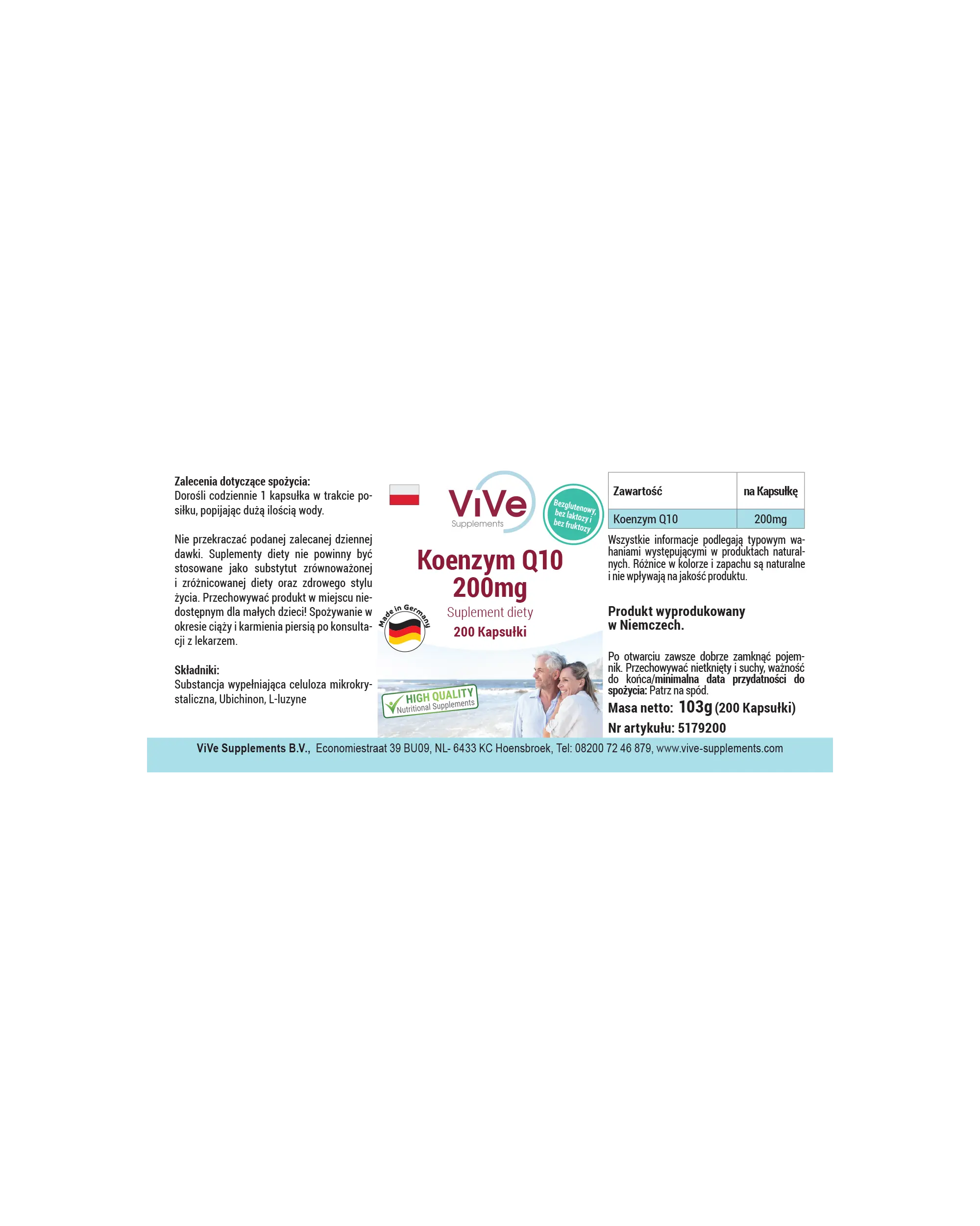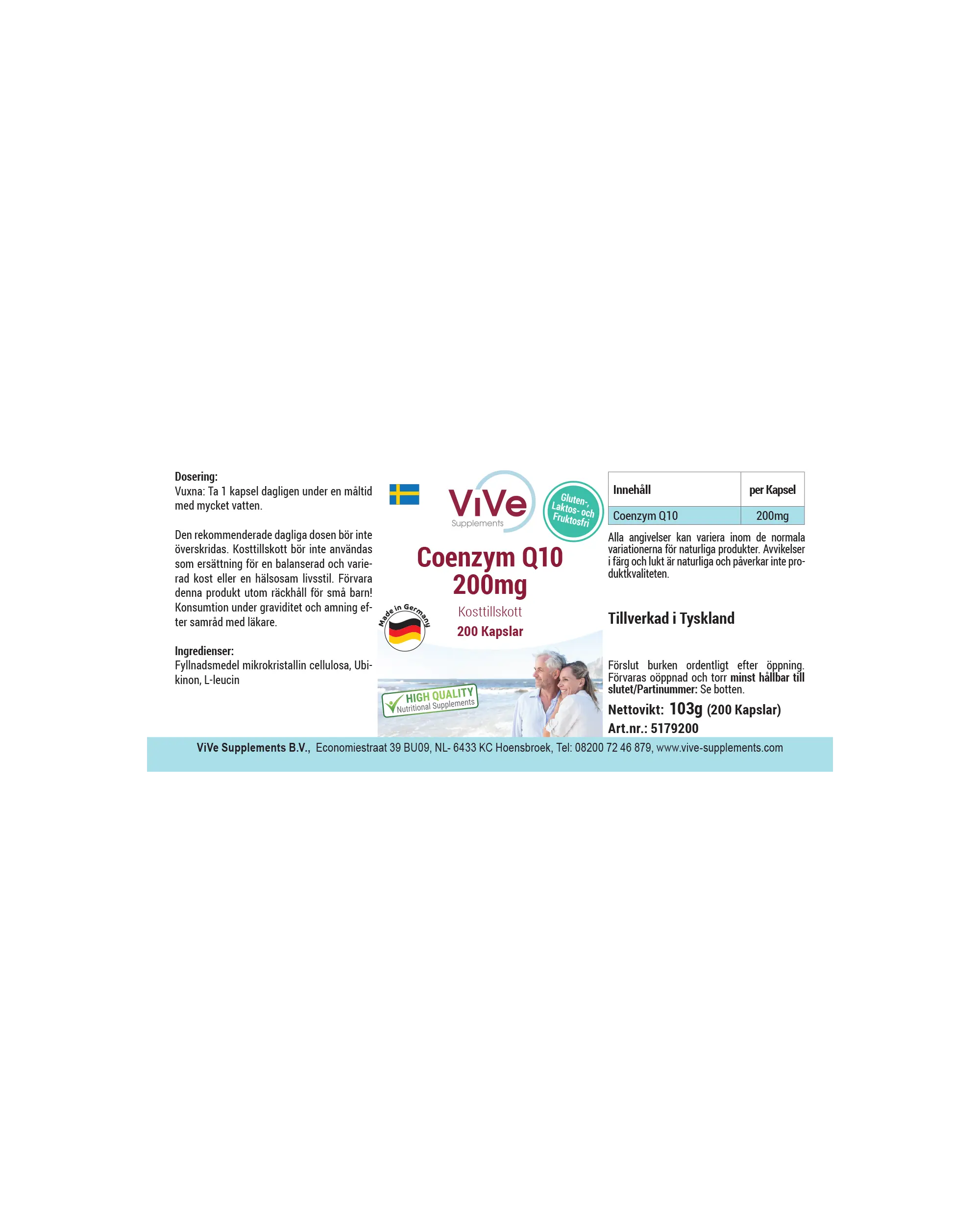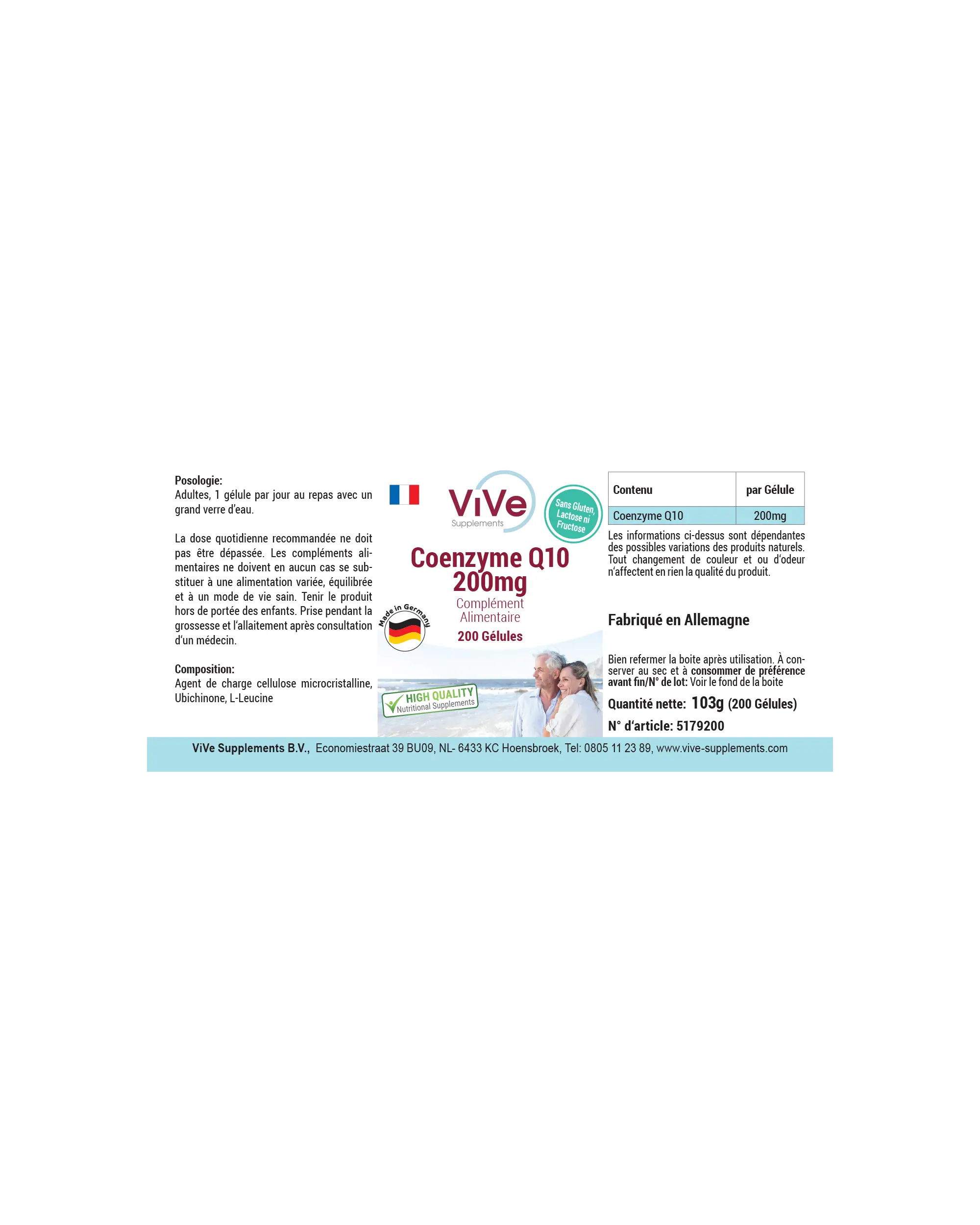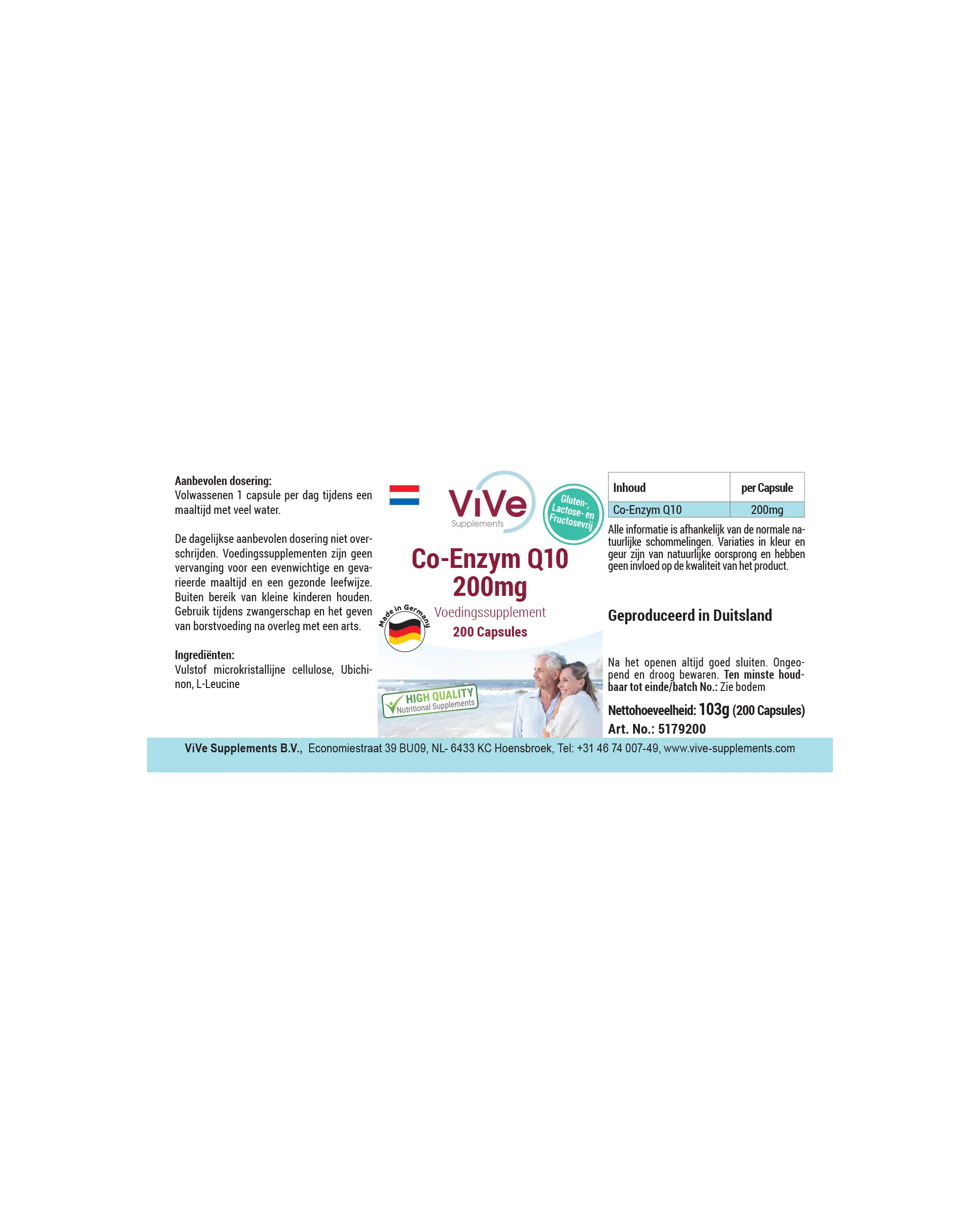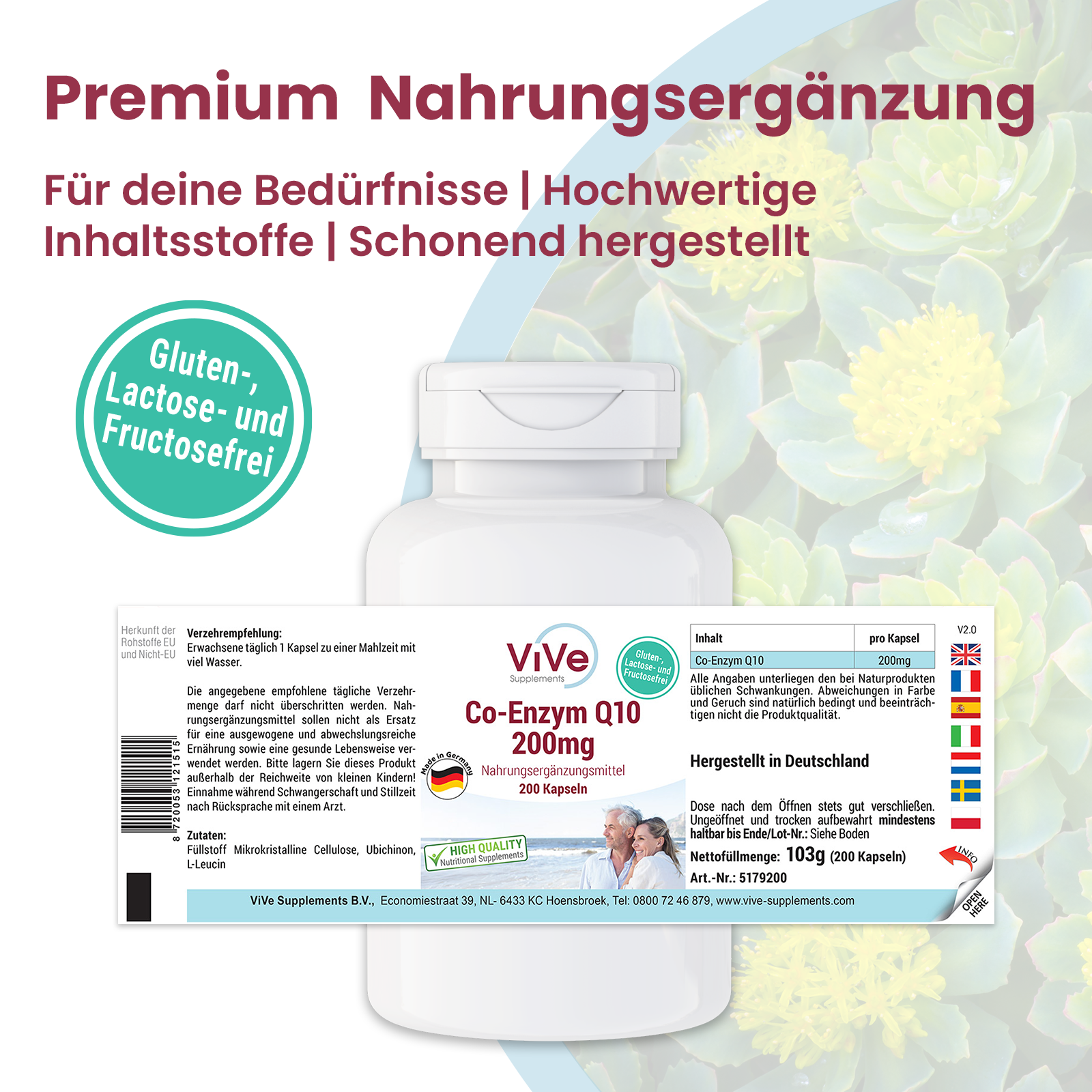 Produktinformationen "Co-Enzym Q10 200mg - 200 Kapseln - schluckfreundlich - Ubichinon - vegan | Vive Supplements"