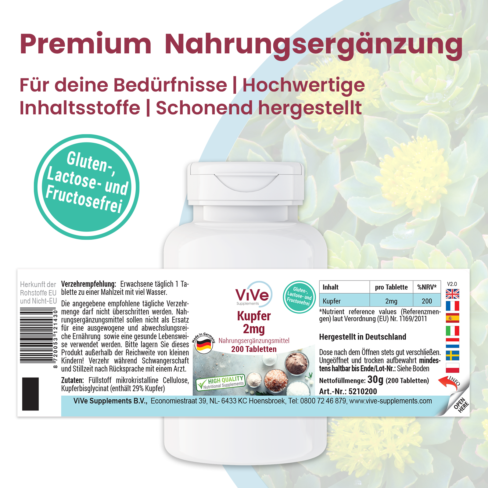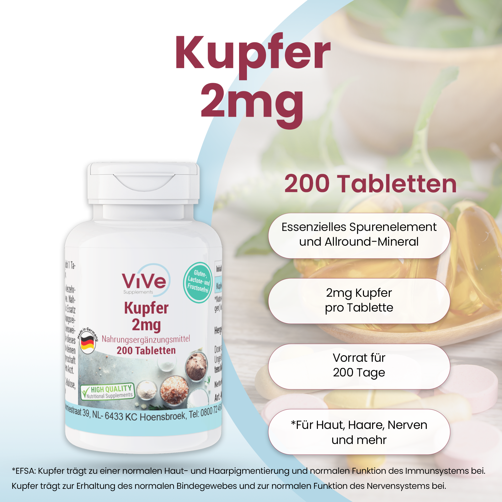 Product information "Kupfer 2mg 200 Tabletten | Vive Supplements"